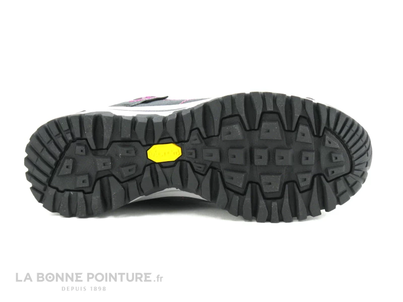 La semelle de marche Vibram est en caoutchouc noir, elle est crantée pour une bonne accroche et une meilleure stabilité sur tous les terrains.