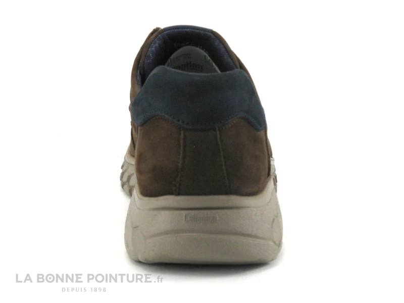 Cette basket de ville Homme Callaghan 50900 est fabriquée avec un beau cuir velours marron chocolat, associé à une partie en cuir bleu marine à l’arrière.