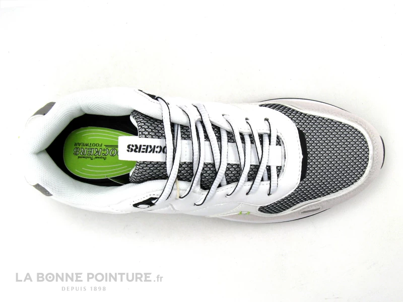 Le lacet bicolore noir et blanc traverse 6 oeillets afin de lacer efficacement la basket Dockers Homme.