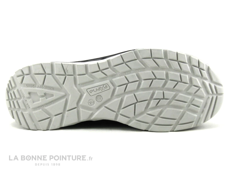 Pratique, la chaussure de sĂ©curitĂ© avec pointe coquĂ©e Exena Mercury s’enfile comme un chausson, pour mieux isoler le pied dans la basket.
