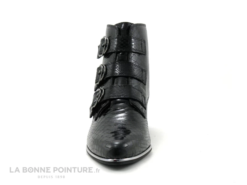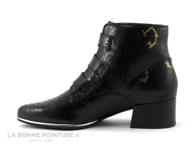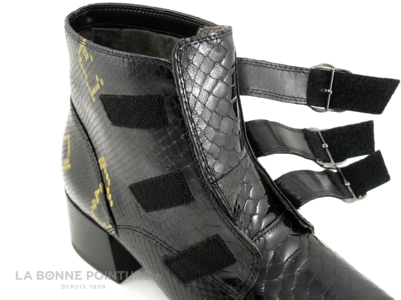 Les bottines Femme en cuir noir verni aspect reptile Fugitive Bahem, des boots chics et tendance Femme avec brides à scrach qui vont faire des heureuses !