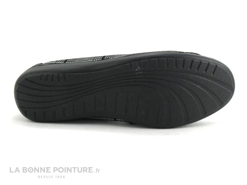 Cette ballerine mode Femme est en cuir velouté à carreaux noirs et blancs avec des lignes bordeaux foncé.