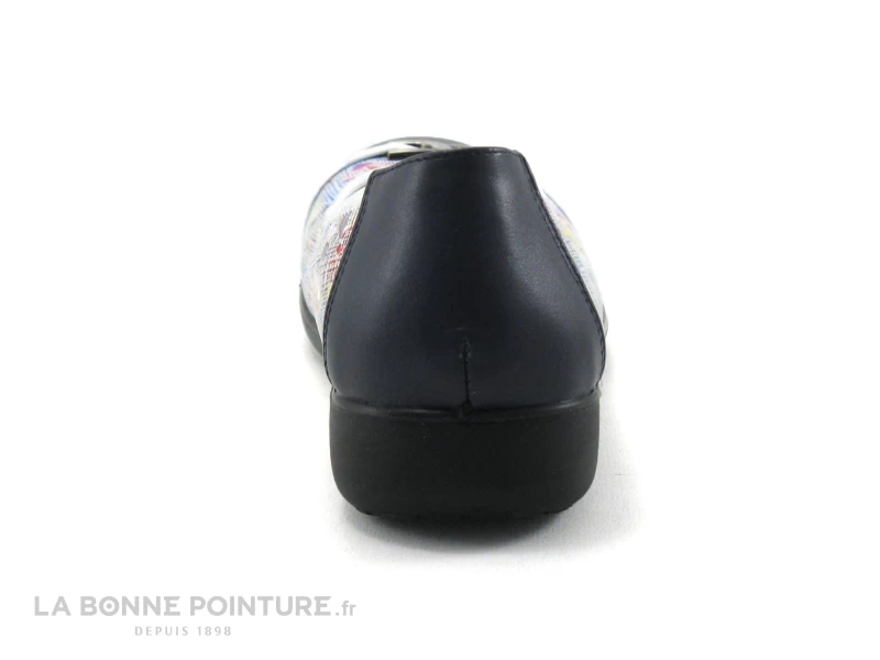 Ctte chaussure Inéa Femme mélange cuir bleu marine et cuir multicolores aux reflets vernis.