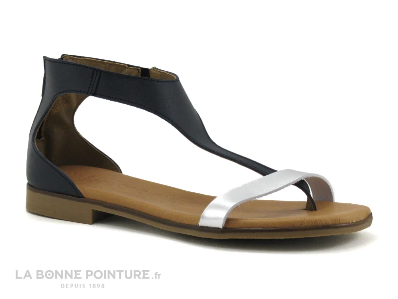 Jordana 3594 – Bleu Marine Et Argent – Sandale Femme Avec Zip
