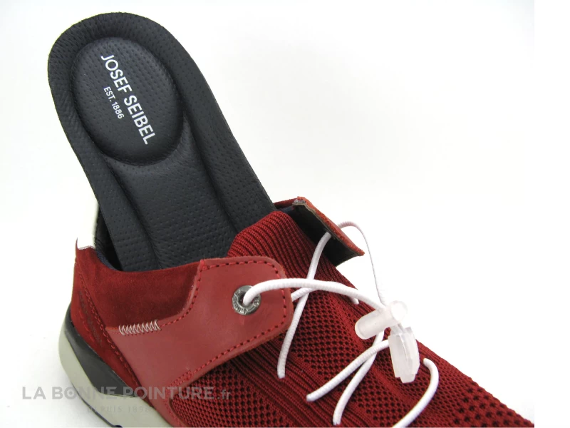 Cette basket Josef Seibel Jeremiah s’enfile comme un chausson et se resserre avec le lacet élastique blanc à serrage rapide.