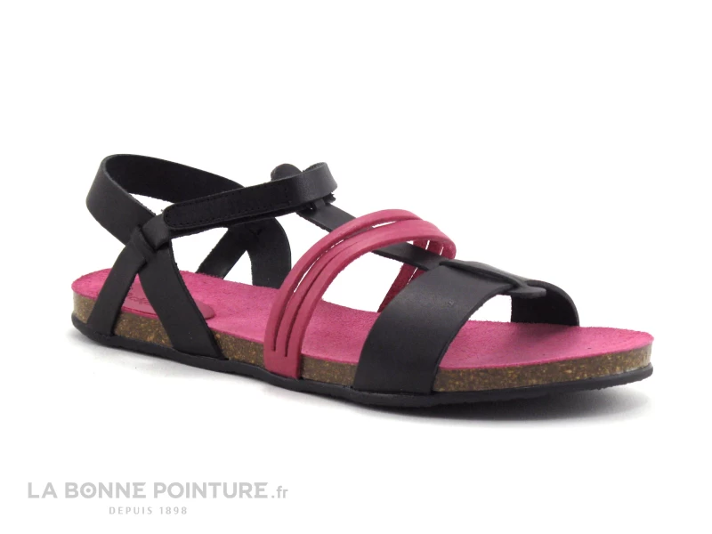 Les nu-pieds fille / femme Kickers Picnic en cuir noir et fuchsia, des sandales tout en cuir pour l’été au meilleur prix !