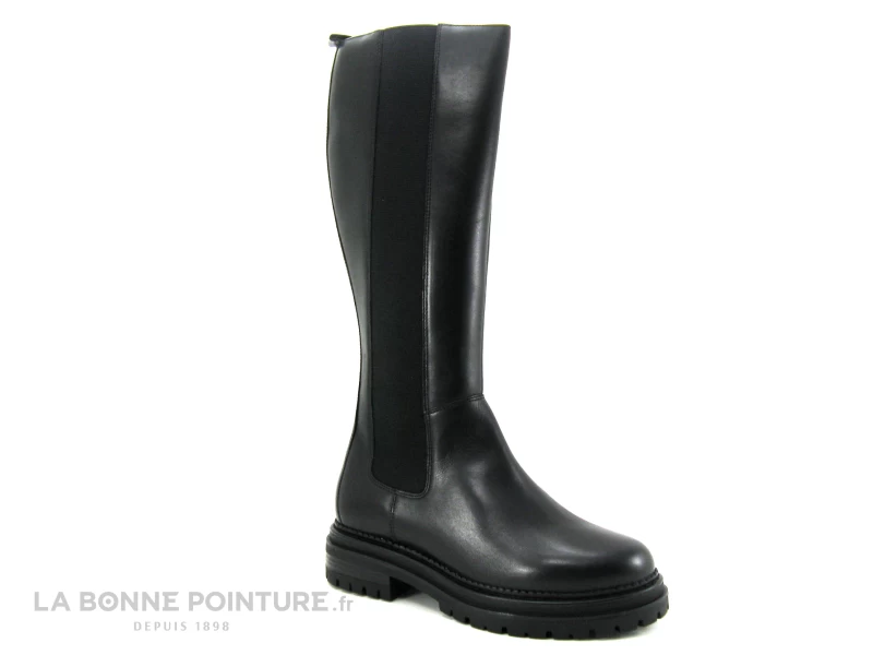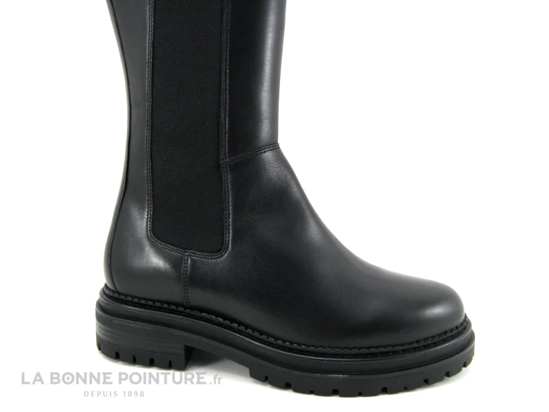 Cette botte Lily Mood Folk est en cuir lisse noir, avec un élastique noir sur le côté externe qui pourra donner une légère aisance dans la chaussure.