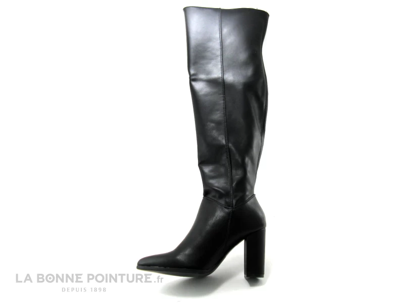 Cette botte noire Ă bout pointu possède une tige lĂ©gèrement Ă©lastiquĂ©e, afiin de s’ajuster Ă votre jambe.