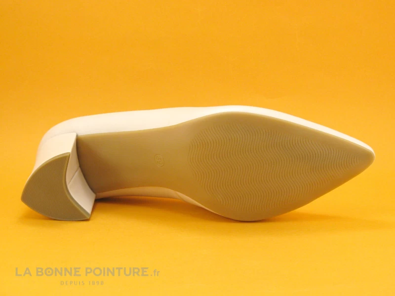 Le talon trapèze de cet escarpin pointu blanc crème Marco Tozzi 22419 mesure environ 6.5 cm de hauteur, il est assez large et ainsi bien stable.