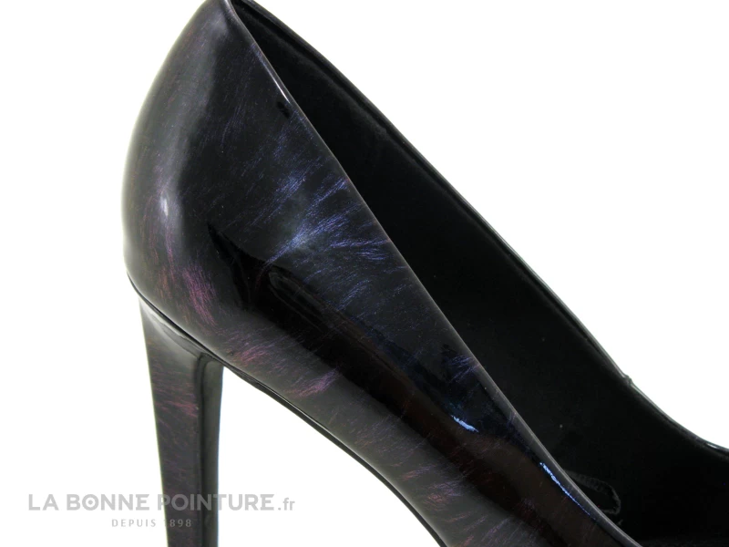 Cette chaussure Femme à petit prix est noir verni, avec de discrètes nuances de rose et de violine.