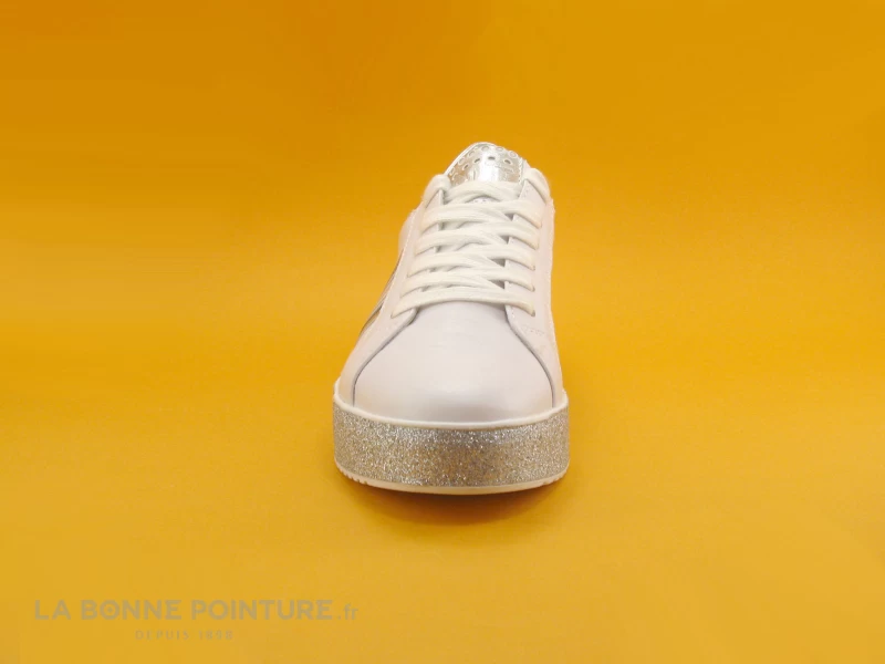 Elles se démarquent avec leur semelle pailletée argent et leur pointe légèrement effilée, les sneakers blanches Marco Tozzi 2-23714-32 !