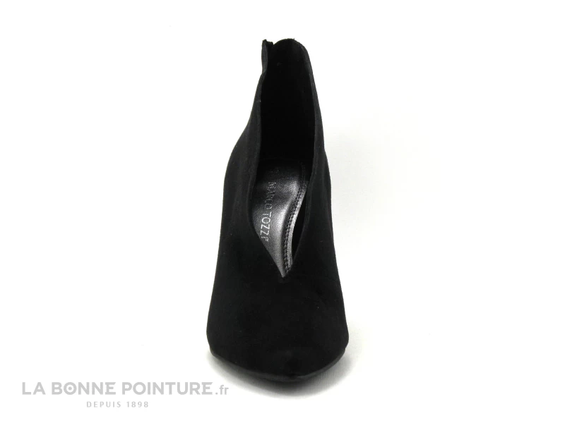 Cet escarpin pas cher Marco Tozzi est en textile velouté noir, avec le bout pointu et la tige qui remonte sur les côtés.