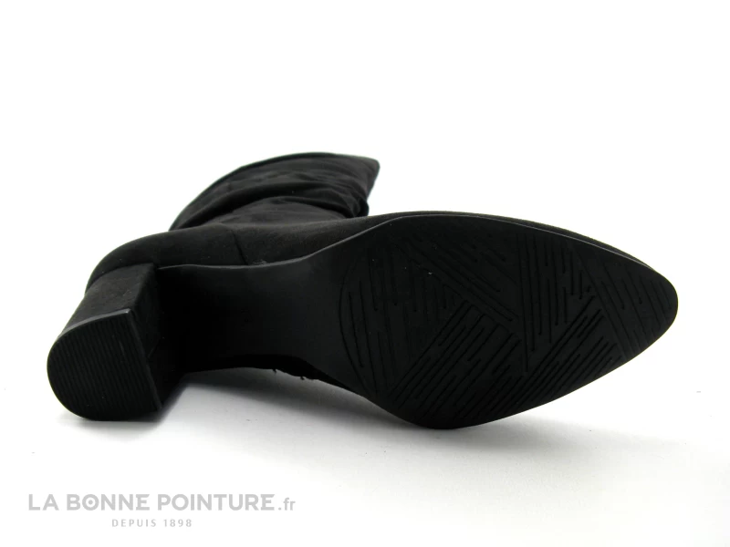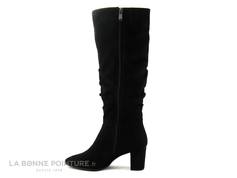 Cette longue botte noire Marco Tozzi 2-25519-27 est en textile velouté, avec la pointe effilée.
