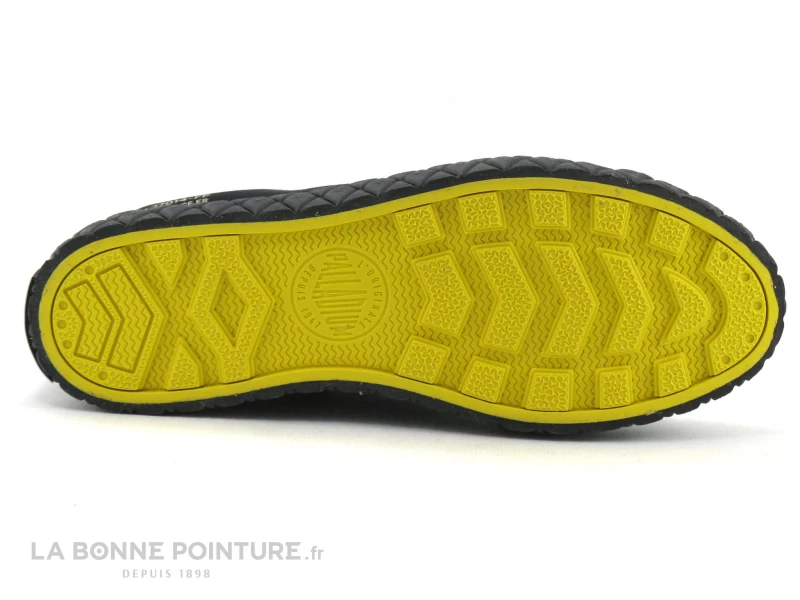 La marque Palladium s’affiche sur la languette des chaussures, ainsi qu’à l’arrière et sur une petite étiquette latérale.