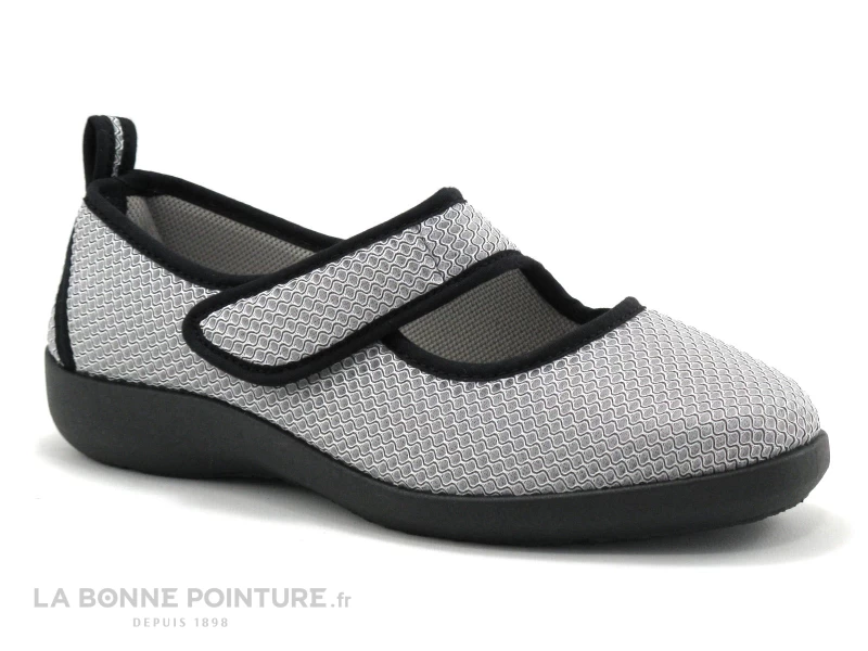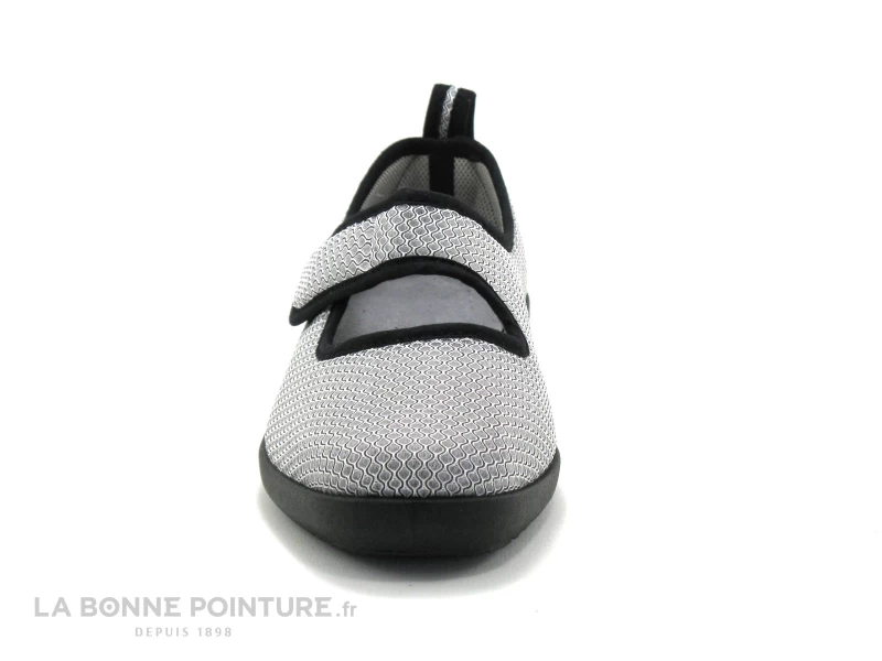 Ce chausson femme en textile gris perle offre une large ouverture pour insérer facilement les pieds sensibles dans la chaussure Fargeot.