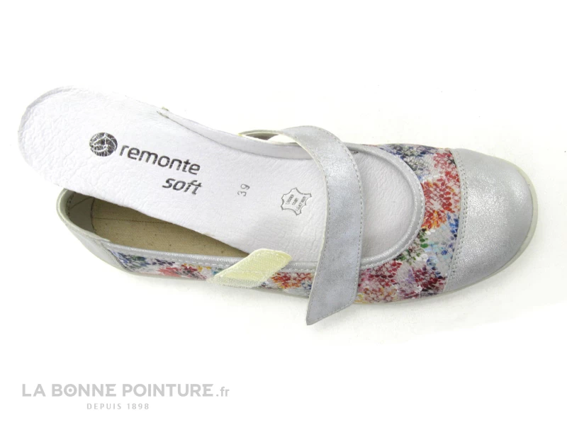 Les ballerines souples argent avec fleurs multicolores Remonte R7627-40, des ballerines Femme très confortables à s’offrir pour les beaux jours !