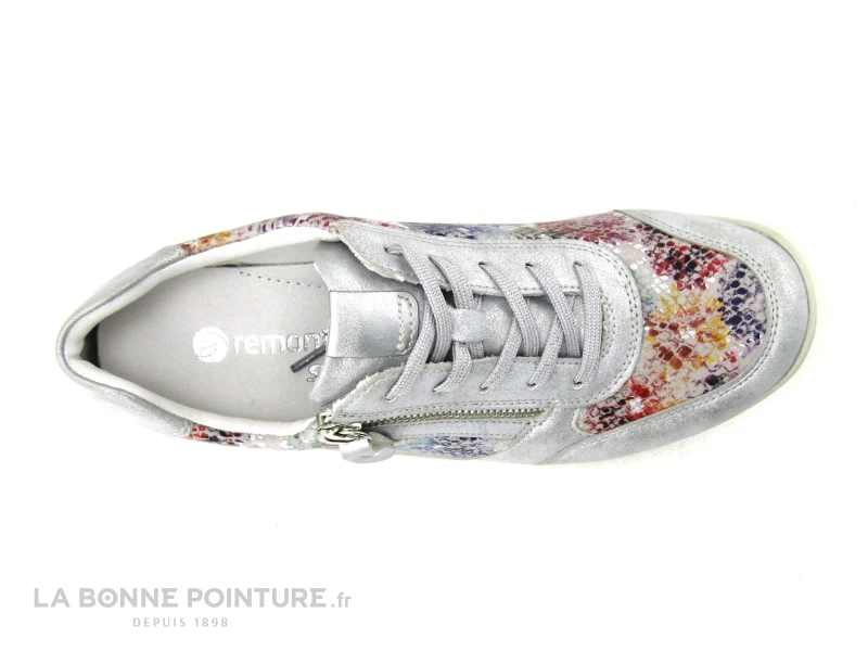La chaussure femme Remonte R7637 propose un double système de fermeture : un laçage à cinq oeillets complété par un zip latéral ce qui permet un ajustement optimal du pied.