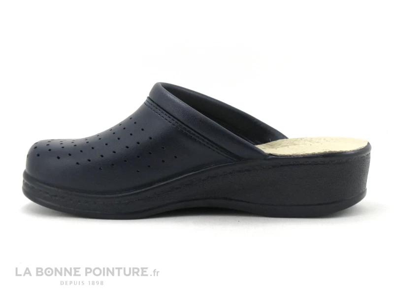 Ces sabots Femme bleu marine Sanital Light 1350 sont majoritairement en cuir, avec une tige perforée pour une bonne aération du pied.