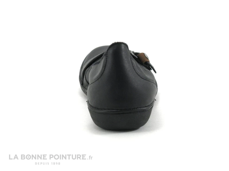 Cette ballerine femme est en cuir de qualitĂ© noir, ornĂ©e d’une bride sur le devant avec un petit passant marron, pour un brin de fantaisie.