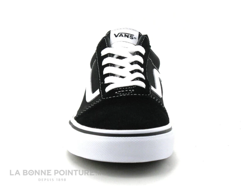 Cette tennis mode combine toile et cuir velours noir, avec un liseré blanc sur les côtés de la baskets Van’s®.
